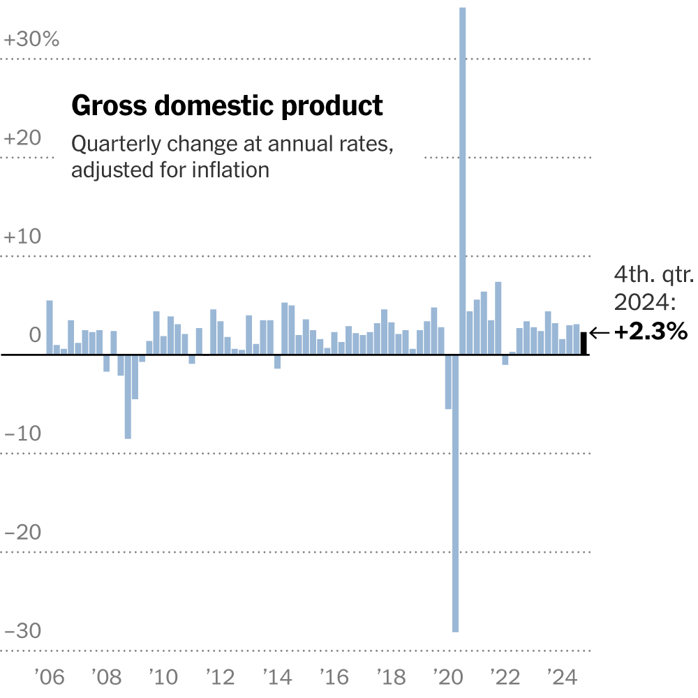 Gross domestic product grew by 2.3 percent in the fourth quarter, capping a more robust year than expected. Policy uncertainty clouds the outlook.According to The New York Times, the U.S. economy ended 2024 on a strong note, with a 2.3 percent growth in gross domestic product (GDP) in the fourth quarter. This capped off a more robust year than expected, despite policy uncertainty clouding the outlook.